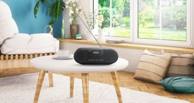 Integroitu kahva, tyylikäs kompakti muoto ja paristojen käyttö ovat ominaisuuksia, joiden ansiosta tämä laite on yhtä hyödyllinen sisällä ja ulkona. Sen voimakas vivahteikas ääni tekee siitä täydellisen kumppanin pihalla, keittiössä tai työhuoneessa.